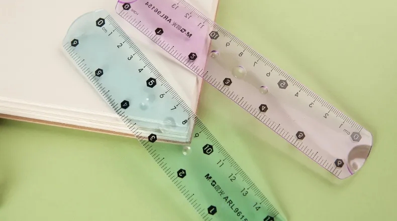 通透的蓝色与紫色外观,清晰UV油墨印刷,易于阅读。15cm、20cm两种规格可选。